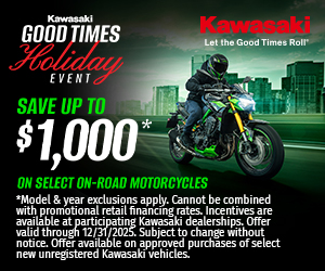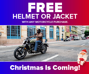 Receive a free helmet or jacket with any new motorcycle purchase while supplies last.